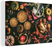 Tableau sur toile Vue de dessus du dîner de Thanksgiving - 120x90 cm - Décoration murale Art