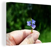 Forget-me-not dans la main d'une femme 120x90 cm - Tirage photo sur toile (Décoration murale salon / chambre) / Peintures Fleurs sur toile