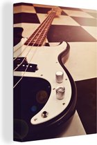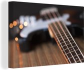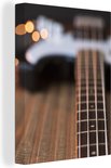 Une guitare basse repose sur le sol Toile 120x160 cm - Tirage photo sur toile (Décoration murale salon / chambre) XXL / Groot format!