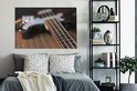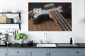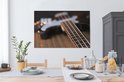 Une guitare basse repose sur une table Toile 140x90 cm - Tirage photo sur toile (Décoration murale salon / chambre)