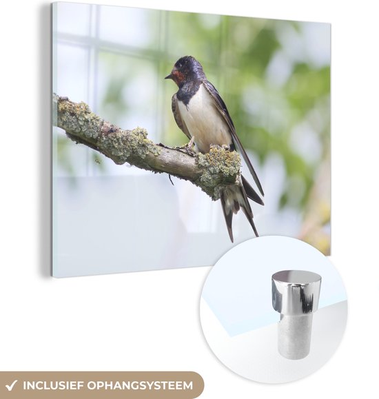 Une hirondelle rustique pose sur une branche Plexiglas 40x30 cm - petit - Tirage photo sur Glas (décoration murale plexiglas)