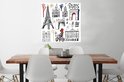 Une illustration artistique des sites touristiques de Paris affiche 75x75 cm - Tirage photo sur Poster (décoration murale salon / chambre) / Poster Europe