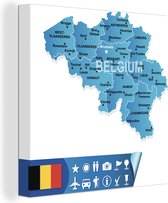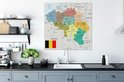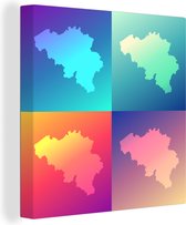 Une illustration colorée d'une carte de België 90x90 cm - Tirage photo sur toile (Décoration murale salon / chambre)