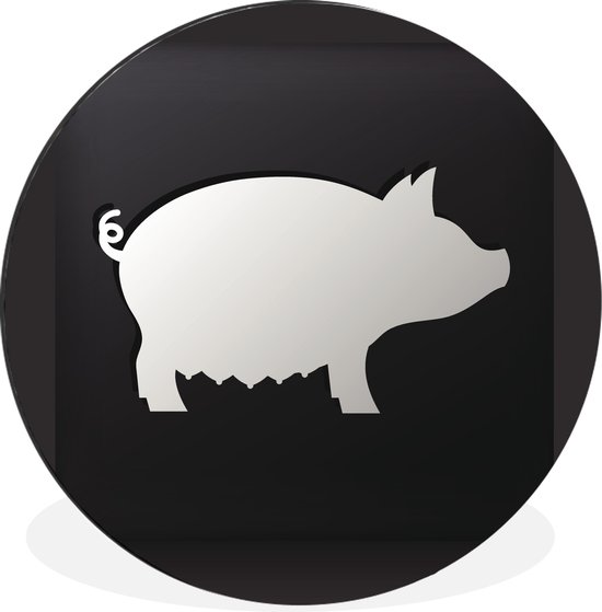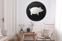 Une illustration d'un cochon sur fond noir. Cercle mural aluminium ⌀ 140 cm