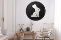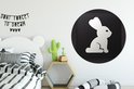 Une illustration d'un lapin sur fond noir. Cercle mural aluminium ⌀ 140 cm