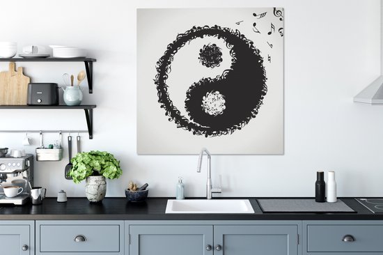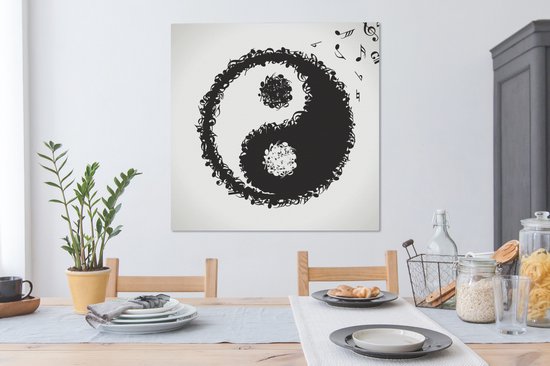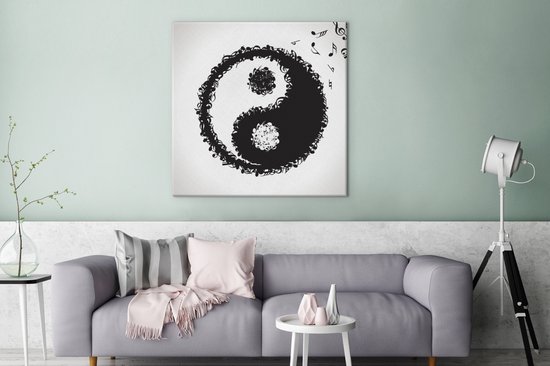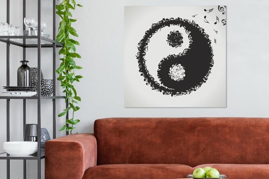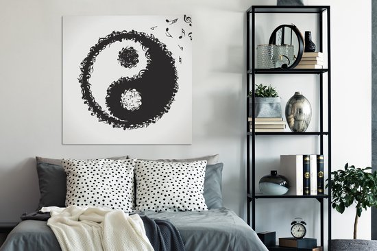 Une illustration d'un logo Yin et Yang composé de notes de musique sur toile 90x90 cm - Tirage photo sur toile (Décoration murale salon / chambre)