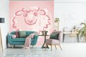 Une illustration d'un mouton dans une fotobehang rose