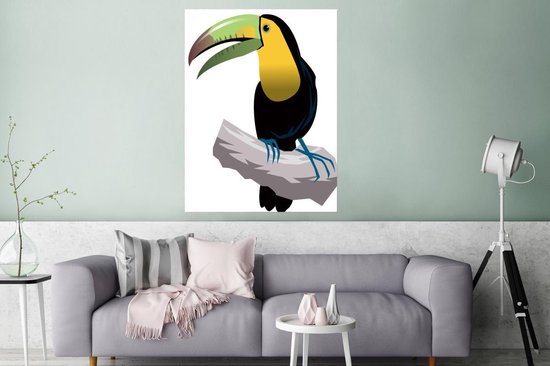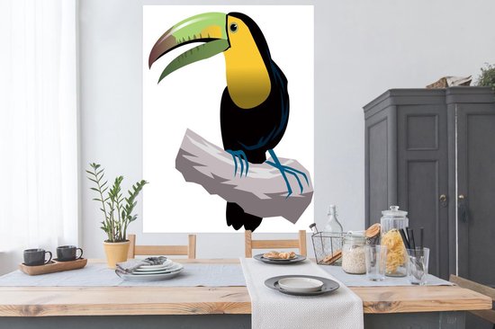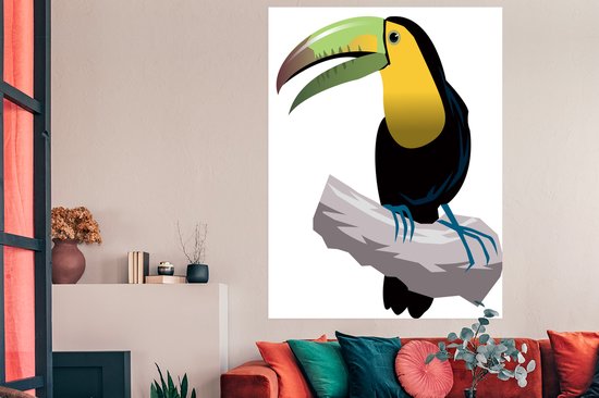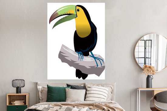 Une illustration d'un poster toucan 120x160 cm - Tirage photo sur Poster (décoration murale salon / chambre) / Poster Vogels XXL / Groot format!