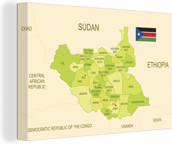 Une illustration d'une carte verte du Soudan du Sud 180x120 cm - Tirage photo sur toile (Décoration murale salon / chambre) XXL / Groot format!