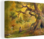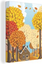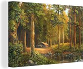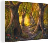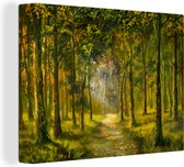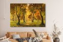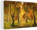 Une illustration d'une forêt au soleil d'automne sur toile 180x120 cm - Tirage photo sur Toile (Décoration murale salon / chambre) / Arbres Peintures sur toile XXL / Groot format!