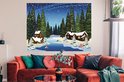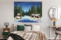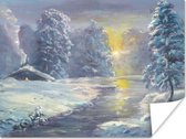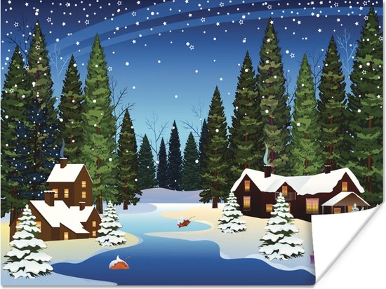 Une illustration d'une forêt enneigée dans la nuit poster 160x120 cm - Tirage photo sur Poster (décoration murale salon / chambre) / Poster Arbres XXL / Groot format!