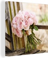 Une illustration de design floral de roses roses sur toile 50x50 cm - Tirage photo sur toile (Décoration murale salon / chambre)