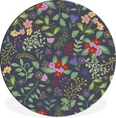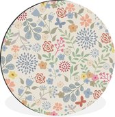 Une illustration de fleurs et d'une tulp bleue Cercle mural aluminium ⌀ 140 cm