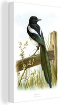 Illustration d'une pie sur une clôture 90x140 cm - Tirage photo sur toile (Décoration murale salon / chambre)