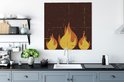 Une illustration de trois flammes orange sur toile 90x90 cm - Tirage photo sur toile (Décoration murale salon / chambre) / Peintures sur toile Catastrophes naturelles