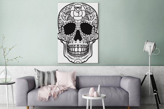 Une illustration en noir et blanc d'une toile de crâne de Dias De Los Muertos 90x140 cm - Tirage photo sur toile (Décoration murale salon / chambre)