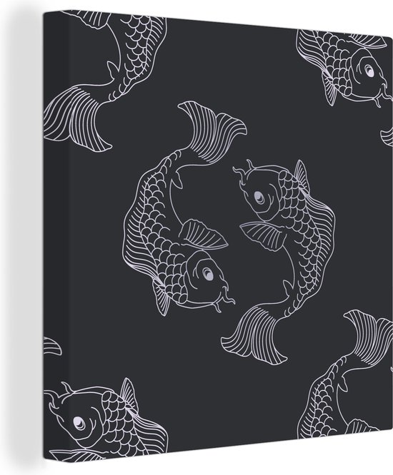 Une illustration sombre de poisson dans un motif 90x90 cm - Tirage photo sur toile (Décoration murale salon / chambre)