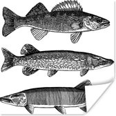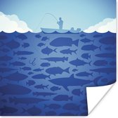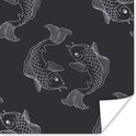 Une illustration sombre de poisson dans un motif affiche 75x75 cm - Tirage photo sur Poster (décoration murale salon / chambre) / Poster Pêche