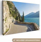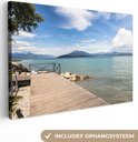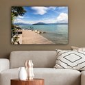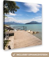 Une jetée en bois au lac de Garde clair en Italie 60x40 cm - Tirage photo sur toile (décoration murale salon / chambre)