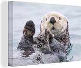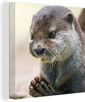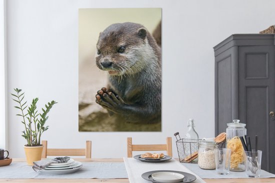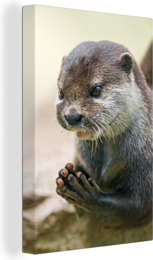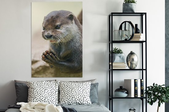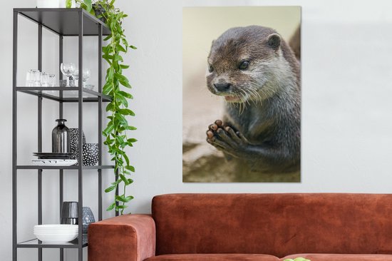 Une loutre avec ses pattes jointes toile 2cm 80x120 cm - Tirage photo sur toile (Décoration murale salon / chambre) / Animaux sauvages Peintures sur toile