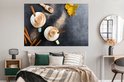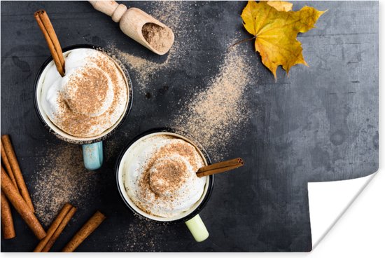 Une photo aérienne d'un café automnal servi avec un poster cannelle 180x120 cm - Tirage photo sur Poster (décoration murale salon / chambre) XXL / Groot format!