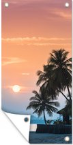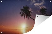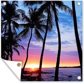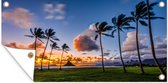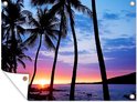 Une silhouette de palmiers lors d'un coucher de soleil sur Hawaii Poster Jardin 160x120 cm - Toile de jardin / Toile d'extérieur / Peintures d'extérieur (décoration de jardin) XXL / Groot format!