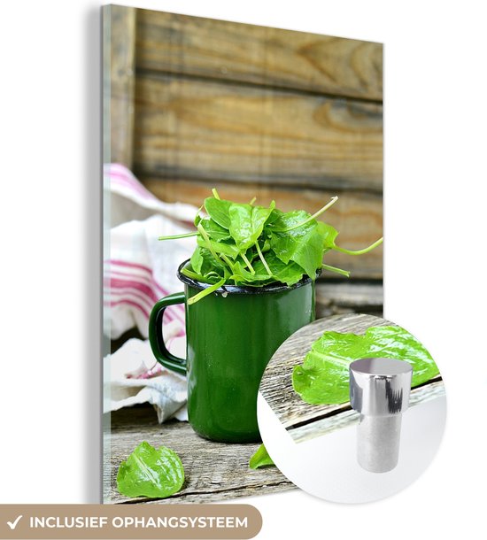 Une tasse verte d'oseille avec l'oseille verte Plexiglas 60x80 cm - Tirage photo sur Glas (décoration murale en plexiglas)