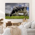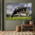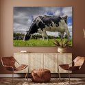 Une vache frisonne avec des nuages sombres au-dessus de son plexiglas 180x120 cm - Tirage photo sur Glas (décoration murale plexiglas) XXL / Groot format!