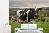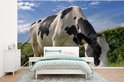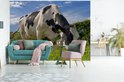Une vache frisonne broutant par une journée d'été ensoleillée papier peint photo vinyle largeur 375 cm x hauteur 280 cm - Tirage photo sur papier peint (disponible en 7 tailles)