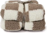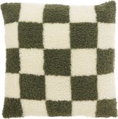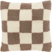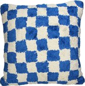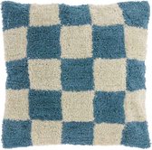 Sierkussen Checker - Katoen - Blauw / Crème - 50x50 cm - Damier - Fermeture éclair / Coussin intérieur