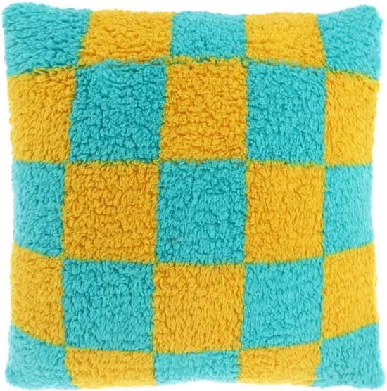 Unique Living - Sierkussen Check Yellow/ Blue -53x53cm