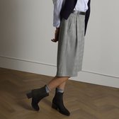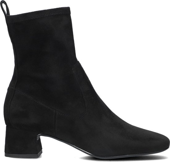 Cette bottine est issue de la collection Unisa et s'accorde avec de nombreuses tenues ! La botte est finie en daim noir et a de belles coutures. La tige est très souple et vous pouvez facilement l'enfiler et l'enlever grâce à la fermeture éclair à l'intérieur et à la boucle d'enfilage. L'intérieur est en textile et possède une assise plantaire fixe en cuir. Le talon carré bas mesure 4,5 centimètres de haut et la hauteur de la tige est de 15 centimètres. La semelle est en caoutchouc.