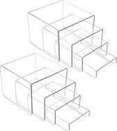 Unyqoos ® Transformez votre espace avec ces présentoirs en acrylique noir élégants et fonctionnels, parfaits pour présenter divers articles tels que des figurines de poupées, des bijoux, des bonbons et plus encore. Cet ensemble comprend trois tailles de supports, vous offrant polyvalence et flexibilité lors de l'organisation de vos expositions. Fabriqué en plastique acrylique de haute qualité, chaque support offre une surface lisse et une construction robuste pouvant supporter jusqu'à 1 kg, idéal pour une présentation sûre et stable. L'ensemble comprend trois tailles différentes : petite (12,5 x 10 x 5,3 cm), moyenne (16 x 10 x 7,9 cm) et grande (20 x 10 x 10,2 cm). Avec un total de six pièces, deux de chaque taille, vous pouvez facilement créer l'arrangement adapté à vos besoins de décoration. Les supports sont munis d'un film protecteur pour éviter les rayures pendant le transport ; Retirez ce film avant d'utiliser les supports pour une apparence impeccable. Ces présentoirs sont non seulement pratiques mais ajoutent également une dimension esthétique à votre intérieur. Ils sont idéaux pour une utilisation dans les magasins ou à la maison et offrent une solution parfaite pour exposer des bijoux, des bonbons, des montres ou d'autres petits objets de collection. Une efficacité spatiale maximale et un attrait visuel sont combinés dans ce produit polyvalent, ce qui en fait un incontournable pour quiconque cherche à faire passer sa présentation décorative au niveau supérieur.
