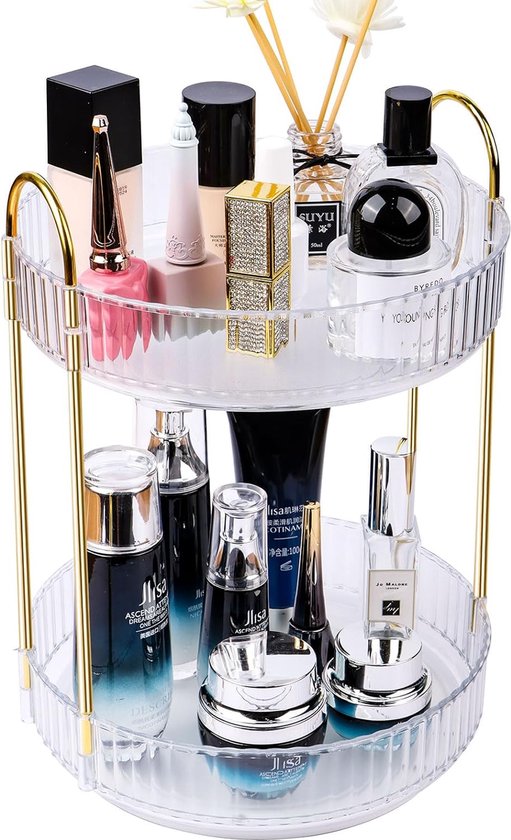Organisateur de Maquillage 2 couches, organisateur de coiffeuse cosmétique rotatif à 360 °, organisateur de Parfum de Soins de la peau , transparent, grande capacité, pour parfums et Maquillage, Soins de la peau.