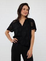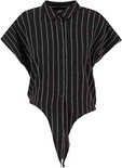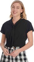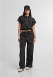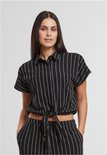 Urban Classics - Chemisier structuré à rayures et nœuds - M - Zwart/Blanc cassé