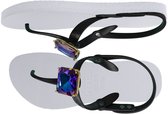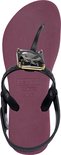 C'est là que l'aventure a commencé. Le design des chaussons eux-mêmes et une seule pierre sur le dessus de la sangle. Ces pantoufles faites à la main sont une pièce élégante qui attirera l'attention dans la rue. Le V est détaillé avec le logo Uzurii signature sur les bretelles. Slippers à bout ouvert et semelle plate en caoutchouc. Caoutchouc - PVC - Pierre Hauteur semelle : 1,5cm Le V (languette) : Fabriqué en Chine Semelle : Fabriquée au Brésil