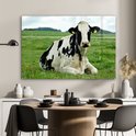 Vache frisonne au repos sur un pâturage vert Plexiglas 120x80 cm - Tirage photo sur Glas (décoration murale en plexiglas)