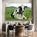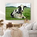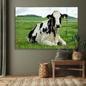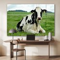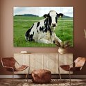 Vache frisonne au repos sur un pâturage vert Plexiglas 180x120 cm - Tirage photo sur verre (décoration murale plexiglas) XXL / Grand format!