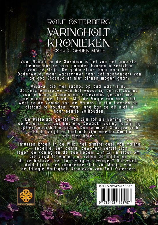 Voor Nanali en de Gazidian is het van het grootste belang dat ze over paarden kunnen beschikken voor de strijd. De godin stuurt haar naar het Dodenwoud, maar waarschuwt haar dat aanhangers van de god Shasqua er niet binnen mogen gaan. Mikaxa, die met Zachos op pad was, is nu de beschermvrouwe van het woud. Zij berijdt Zachos’ zwarte hengst Sombra en is bevriend geraakt met de nachtjager Shade. Met de Magie van haar staf weet ze de koning van de Varons en zijn troepen op afstand te houden, maar lang kan ze dit niet in haar eentje volhouden. De Wisselaar geniet van zijn rol als koning van de Varons. Zijn zus Nusheha bewaakt Varing terwijl hij optrekt naar het noorden. Dan bemoeit Shasqua zich met de strijd en laat ook zijn moeder Omulla van zich horen. Intussen broeit in de Wijk, het armste deel van Varing, rebellie. Een aantal bewoners verzet zich tegen de koning en de edellieden. Zijn zij in staat om die strijd te winnen, of zullen de militie en de vechtslaven hen tot overgave dwingen? Dat wordt duidelijk in het spannende slot, vol Magie, van de trilogie Varingholt Kronieken van Rolf Österberg.