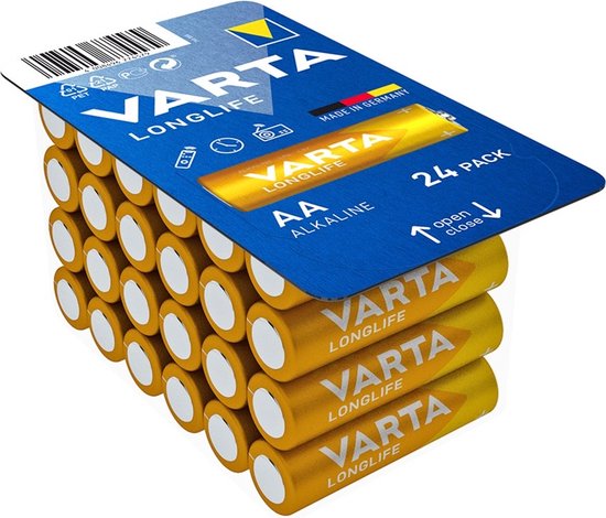 Varta Longlife AA LR6, Batterie à usage unique, AA, Alcaline, 1,5 V, 24 pièce(s), Bleu, Jaune