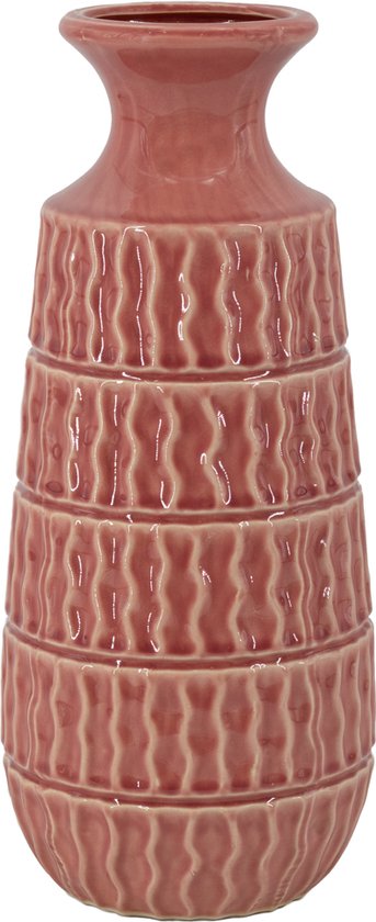 Ce vase de couleur rose n'est certainement pas pour ceux qui ont peur de la couleur. On ne peut vraiment pas ignorer cette céramique en grès aux tons joyeux. Alors prenez un joli vase dans une couleur puissante, mettez-y un bouquet de fleurs artificielles aux couleurs vives ; Votre intérieur sera complètement égayé en un instant. Les dimensions du vase en faïence rose aztèque sont de 16x16x38cm.