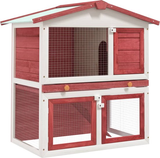 VDXL Konijnenhok voor buiten met 3 deuren hout rood