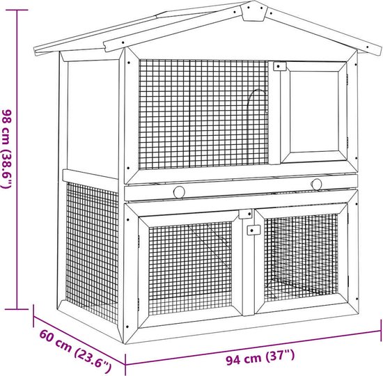 Écrit pour: VDXL Konijnenhok voor buiten met 3 deuren hout