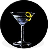 WallCircle - Wall Circle - Martini avec un zeste de citron sur fond noir - Aluminium - Dibond - ⌀ 30 cm - Intérieur et extérieur
