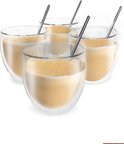 Verres à thé Trends Verres à thé à double paroi avec cuillère - Set de Verres à café - 250 ml - 4 pièces - Verres à Cappuccino - Verre à thé à double paroi