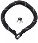 Contrairement à une chaîne AXA comparable (la Cherto 95), celle-ci a un carter de serrure plus solide, c'est à dire coulée d'un seul tenant, elle s'ouvre et se ferme plus facilement (il suffit de tourner d'un quart de tour), elle est également 15 cm plus long et vous permet donc de le passer à travers le cadre du vélo, à travers la roue avant, puis aussi autour d'un lampadaire, et le "manchon" (manchon en nylon autour des maillons) est très bien fait et aide réellement à manœuvrer le chaîne. Il est également livré avec trois clés au lieu de deux. Top slot!