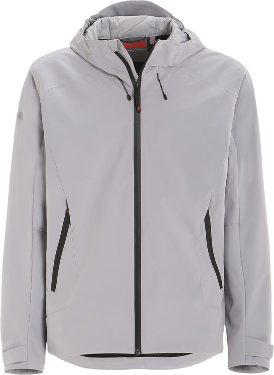 Couleur : Aluminium. Composition : 100 % polyester recyclé double couche 190 g/m². Manches : Longues. Coupe : Classique. Fermeture : Zip frontal étanche à l'eau et au sel. Détails : Veste d'été imperméable et respirante pour homme, en tissu stretch double couche avec membrane hydrophile TPU, imperméabilité 10 000 mm et respirabilité 10 000 g/m²/24 h, construction entièrement étanche, structure coupe-vent, épaules sans coutures pour une protection optimale contre l'eau, capuche fixe ergonomique et enveloppante, zip étanche contrastant, poignets ajustables par Velcro, poche intérieure pour smartphone AWEX, renforts internes aux points critiques, logo SLAM réfléchissant sur la poitrine, poche arrière invisible personnalisable. Durabilité : Fabriquée à partir de tissu 100 % recyclé et traitée déperlant durablement (DWR) sans PFC. Utilisation : Idéale pour la navigation côtière, les équipages et un usage quotidien, parfaite par temps venteux et pluvieux, même en été.