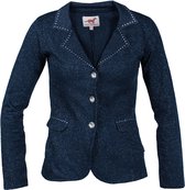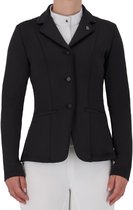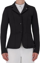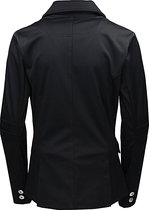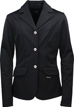 La veste de compétition basique Robin Junior est fabriquée dans un tissu légèrement extensible. La veste a une fermeture à bouton avec des boutons "Quality Horse Products". Les mêmes boutons sont placés sur les manches. Le dos a une double fente. La veste est ornée d'un badge métallique QHP sous la poche avant gauche.