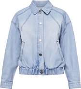 Veste en jean bleu clair pour femme. Doté de fermetures à boutons, de deux poches de poitrine et d'un élastique en bas. La veste en jean a une coupe confortable et extensible. Fait de 98% polyester et 2% élasthanne.