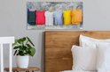 Vêtements colorés accrochés sur une toile de corde à linge 40x20 cm - Tirage photo sur toile (décoration murale salon / chambre)